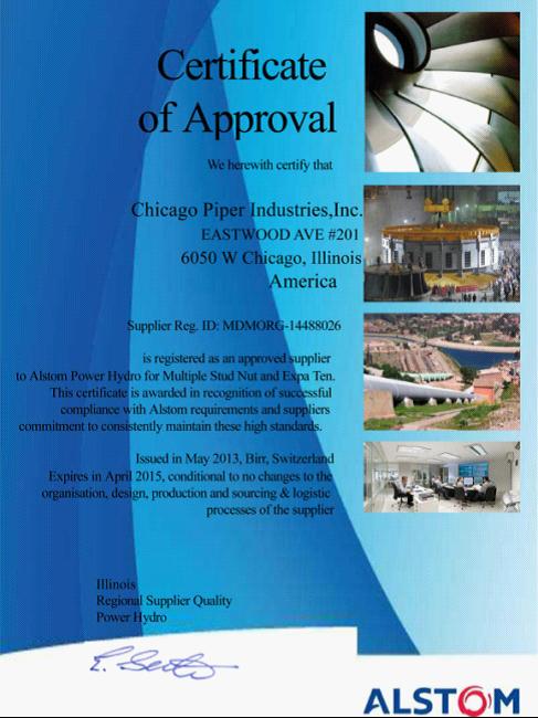 能源行業(yè)的國際性公司ALSTOM通過了對PIPER(派柏)公司的審核認證,國際性公司阿爾斯通通過了對